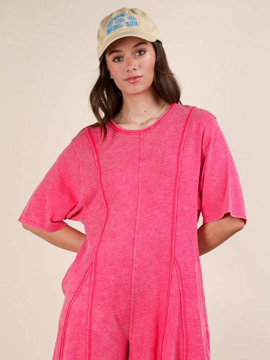 Mineral Washed Oversized Knit Comfy Romper