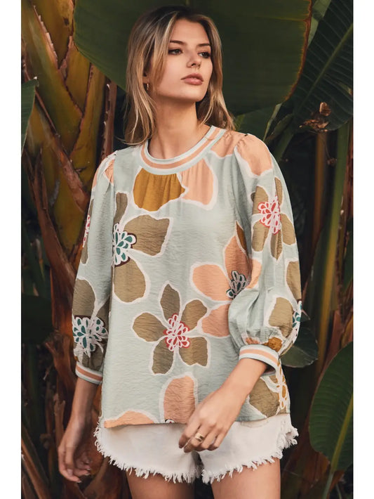 Floral Balloon Sleeve Top