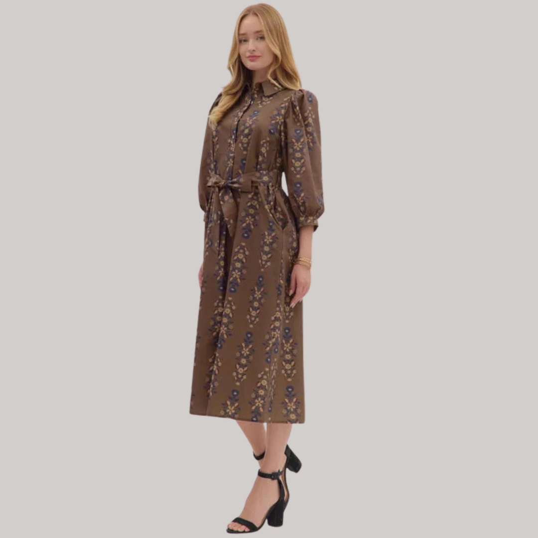 Slip into effortless elegance with this charming floral midi dress. The defined waist belt cinches your silhouette for a flattering fit, while the classic collar adds a touch of sophistication. Perfect for brunch dates, garden parties, or any occasion calling for polished style with personality. The midi length offers versatile coverage that works from season to season, making this dress a go-to favorite you'll reach for again and again.