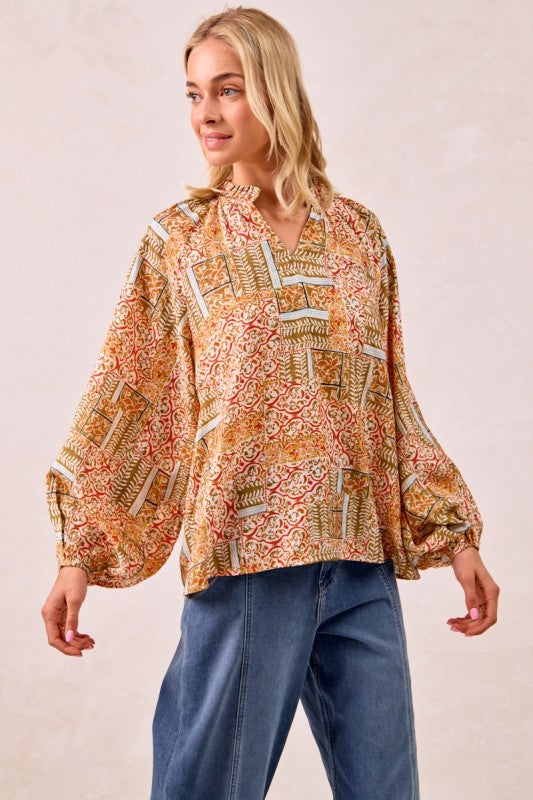 Add a splash of fun to your wardrobe with this Printed V-Neck Blouse! Featuring charming balloon sleeves and a flattering V-neckline, this breezy woven top mixes comfort with a playful vibe. Whether paired with jeans or skirts, it’s the perfect pick for days when you want to feel stylish and spirited.